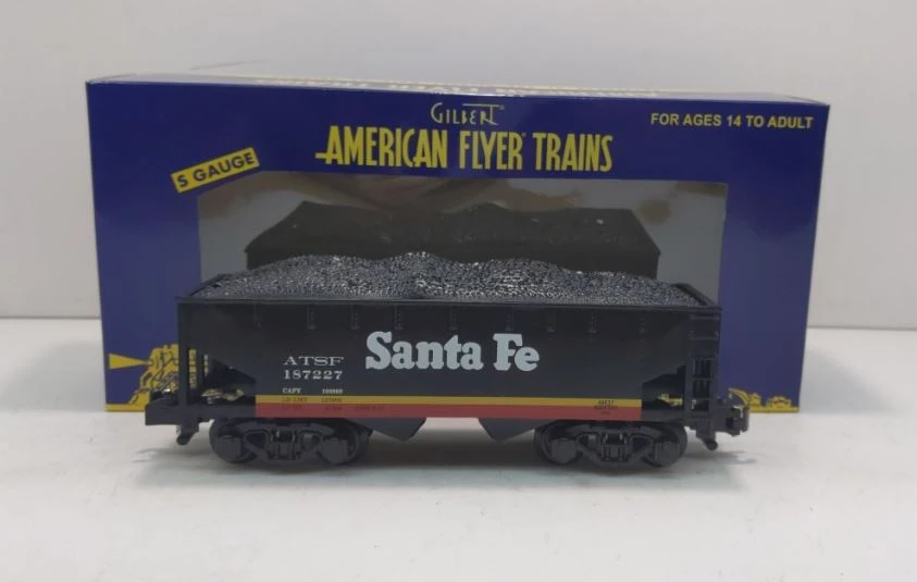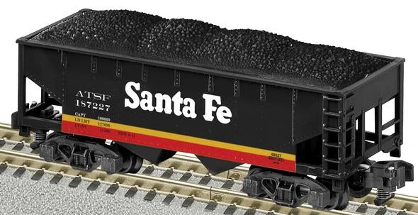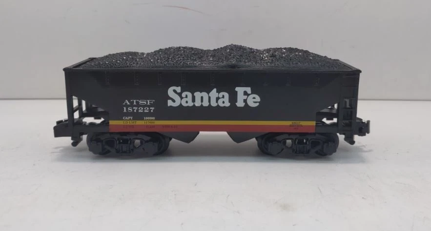 This is an AF 6-48637 Santa Fe Midnight Hopper. Santa Fe Midnight Chief 2-bay hopper. Its key features are: Die-cast metal sprung trucks and operating couplers Plastic removable coal load Dimensions: length: 7 3/8” RailLine: Santa Fe Minimum curve: 36 dia.