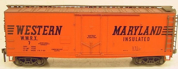 Here is an Atlas 7 Western Maryland Refrigerator Car. This car features plastic trucks and hook couplers.