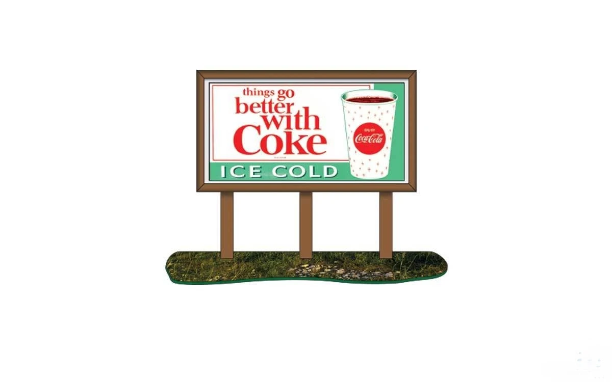 This is a Classic Metal Works 21000 N Scale Assembled Things go better with Coke Coca-Cola Roadside Billboard (white, green, red).