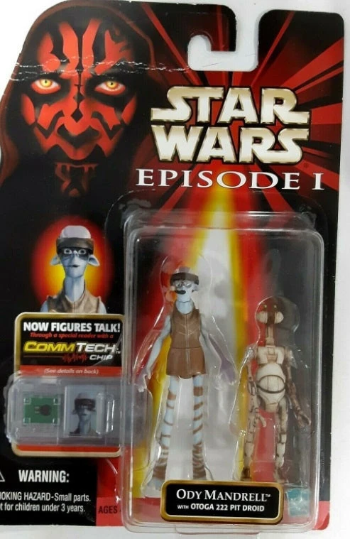 This is a Hasbro Ody Mandrell W/ Otoga 222 Pit Droid CommTech Chip Star Wars Episode I.