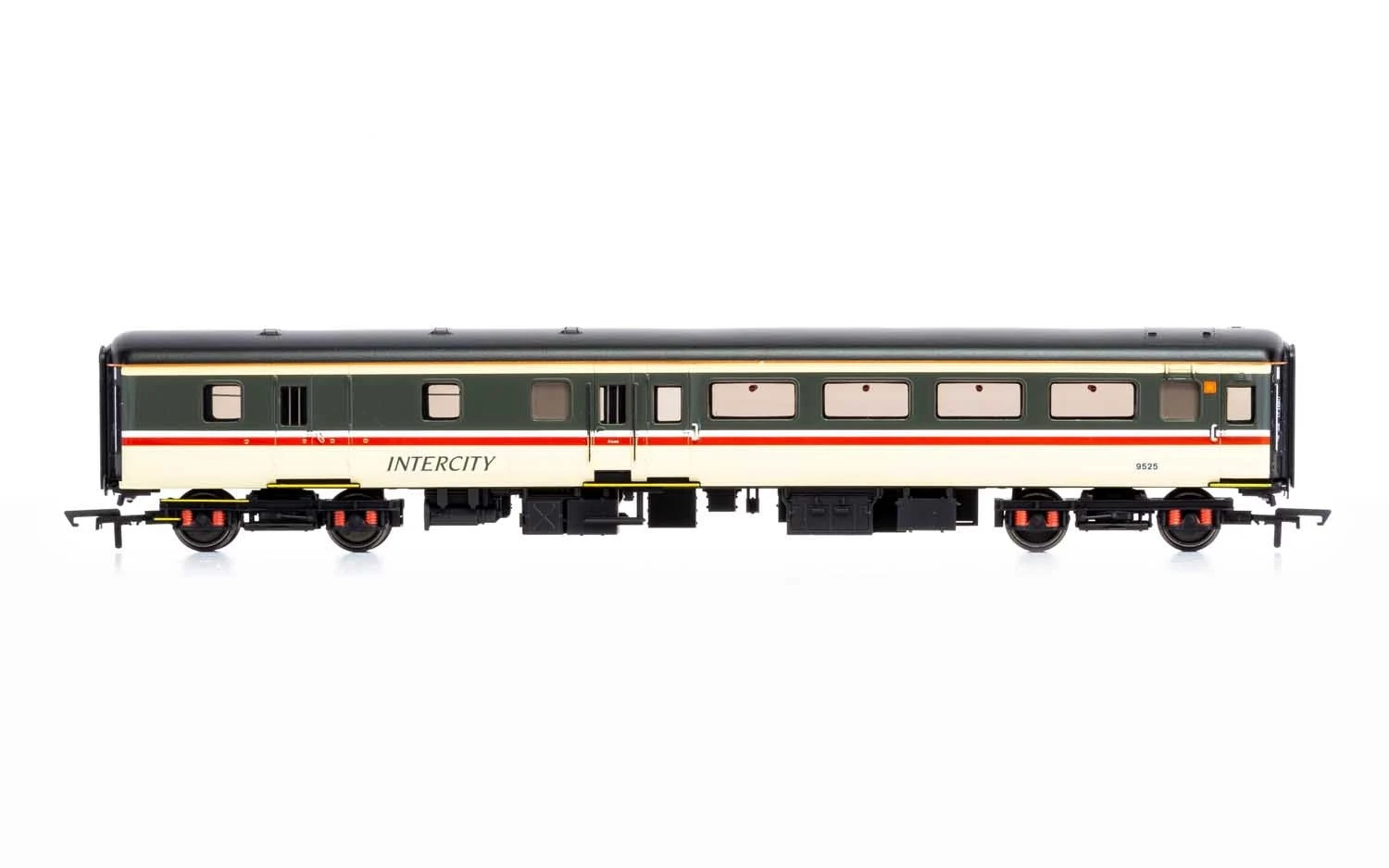 This is a Hornby R4921A OO British Railways Intercity Mk.IIF Brake Second Open Coach Car – Era 8 #9525. Specifications: Length: 268mm; Period: Era 8 (1982 – 1997); Operator/Livery: BR Intercity, Executive; Designer: BREL.