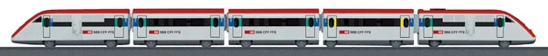 This is a Marklin 29303 HO Scale My World High-Speed Train Battery Operated Starter Set w/Plastic Track – My World Swiss ICN Magnet couplers make coupling cars child’s play for this high-speed five-part train set. There is a permanently coupled unit consisting of a motorized diesel locomotive and a bi-level passenger car with a built-in battery holder. The train has three speed levels in both forward and reverse, three sound functions and triple headlights. The train can be operated with 2 different frequencies (C/D), allowing you to add a second battery train. A track oval, wireless infrared controller and batteries are included.