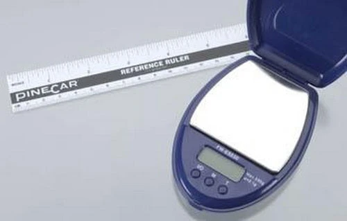 This is Pine-Car P4035 Performance & Conformity System™. Portable, digital scale and conformity gauge keep you up to speed on your racer’s weight and dimensions. Instantly check car weight to within .01 of an ounce. Measure overall width and length, width between wheels, track clearance and locate the car’s center of gravity with the handy fulcrum point. Use the mathematical formulas and simple table to determine optimum placement for your car’s center of gravity (CoG). Adjust for optimum speed and stability. Maximum weight 600g (21.1 oz).