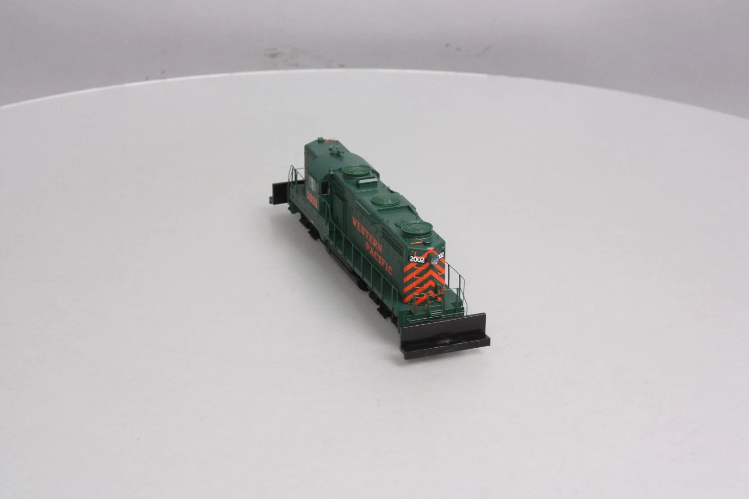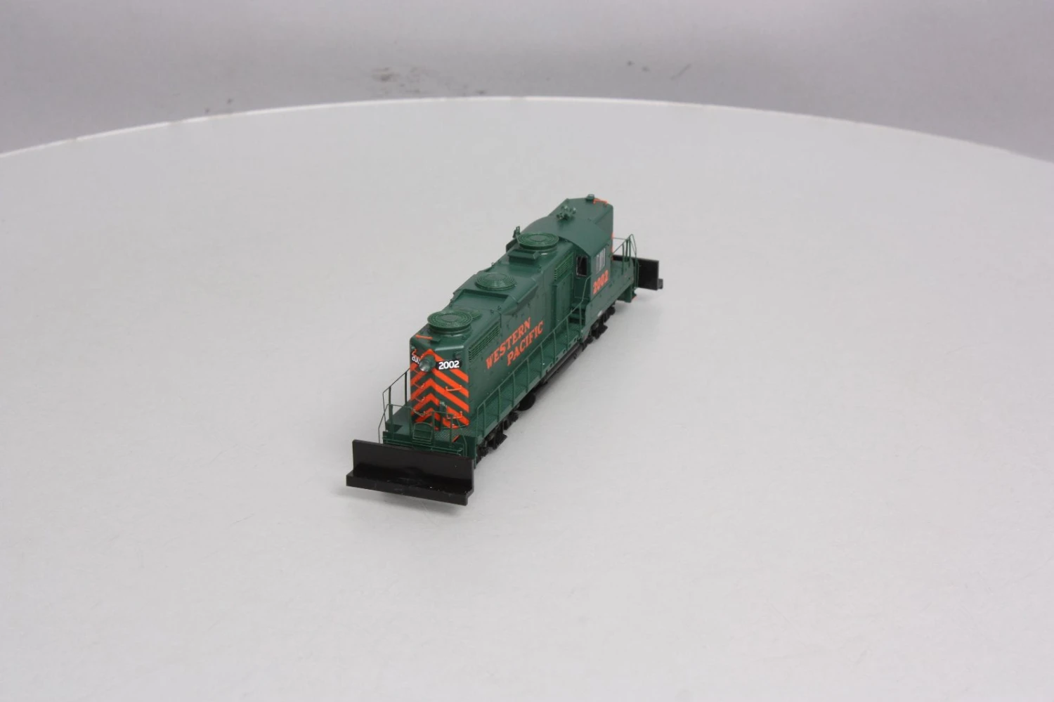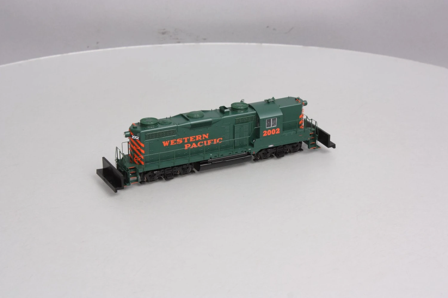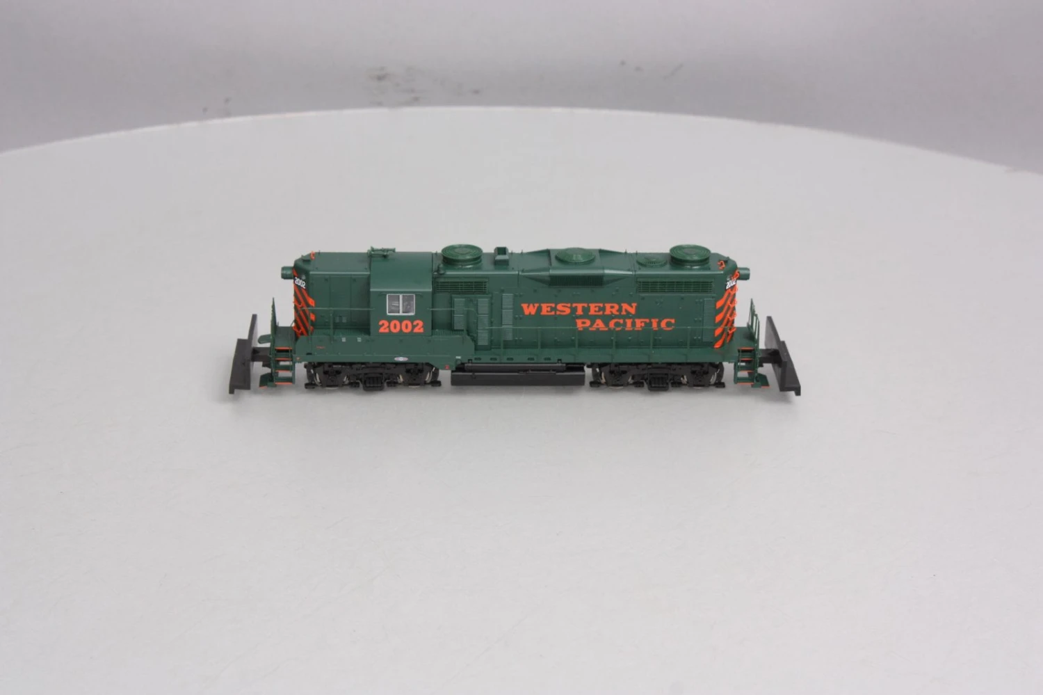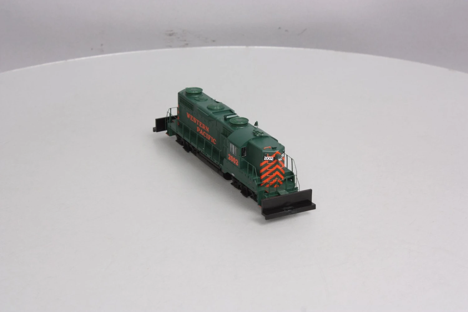 Here is a Proto 2000 920-31919 Western Pacific EMD GP20 High Hood #2002 w/DCC, Sound. This locomotive features a heavy die cast chassis, DC motor with superrite anisotropic magnets, sintered bronze oilless bearings, all-wheel drive and electrical pickup, 5 pole skew wound balanced armature motor with low amp draw, dual machined brass flywheels, operating knuckle couplers, operating headlamp, metal wheels and axles.